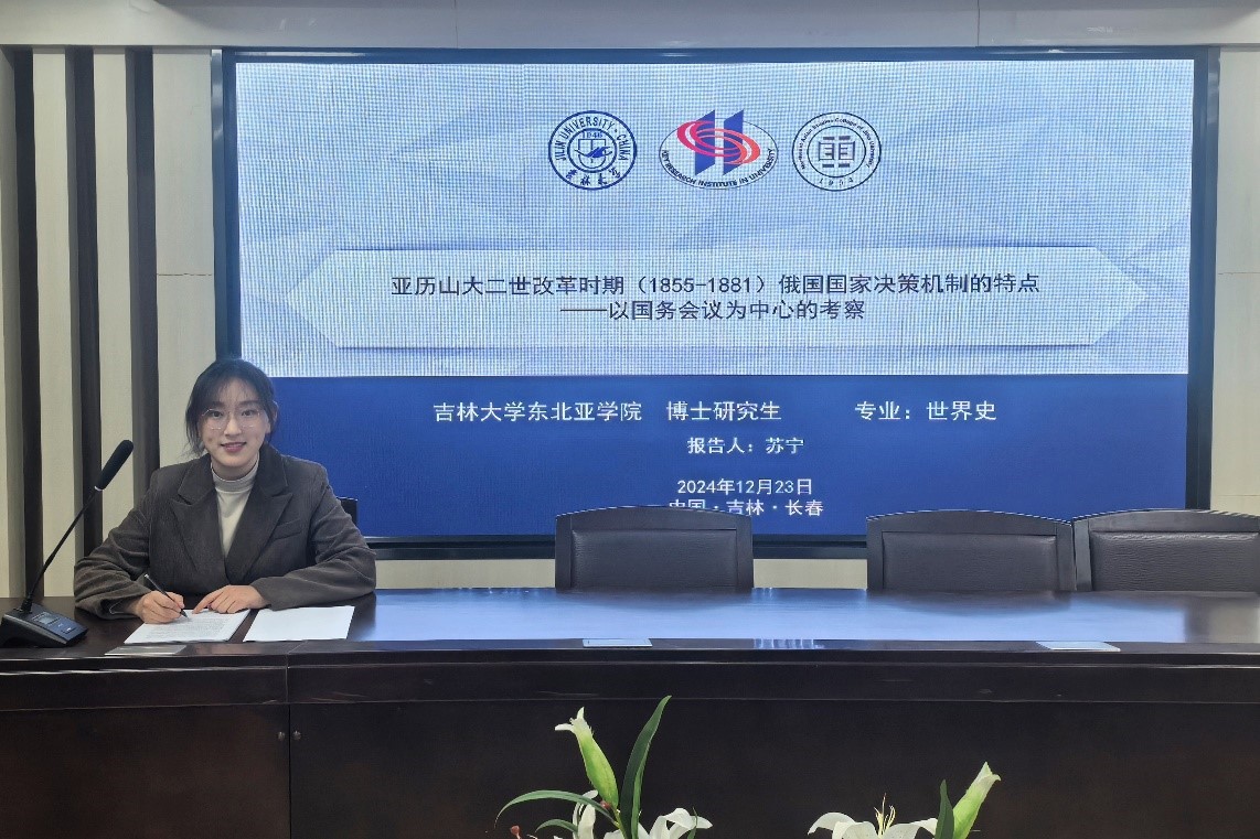 苏宁同学介绍了俄国亚历山大二世时期国务会议的组织架构、职能权限、人员构成等要素,分析了国务会议的运作机制,进而探讨国务会议在俄国政治现代化过程中的作用。与会老师对苏宁同学的论文进行点评,并从研究方法、学科融合等角度予以指导和拓展。