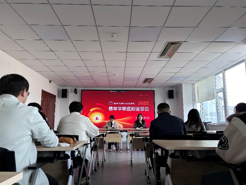 在东荣大厦408召开2025年春季学期研究生返校思想动态座谈会。会议由辅导员山丹老师主持,辅导员张坦老师及各年级博士、硕士代表近40人参加。
